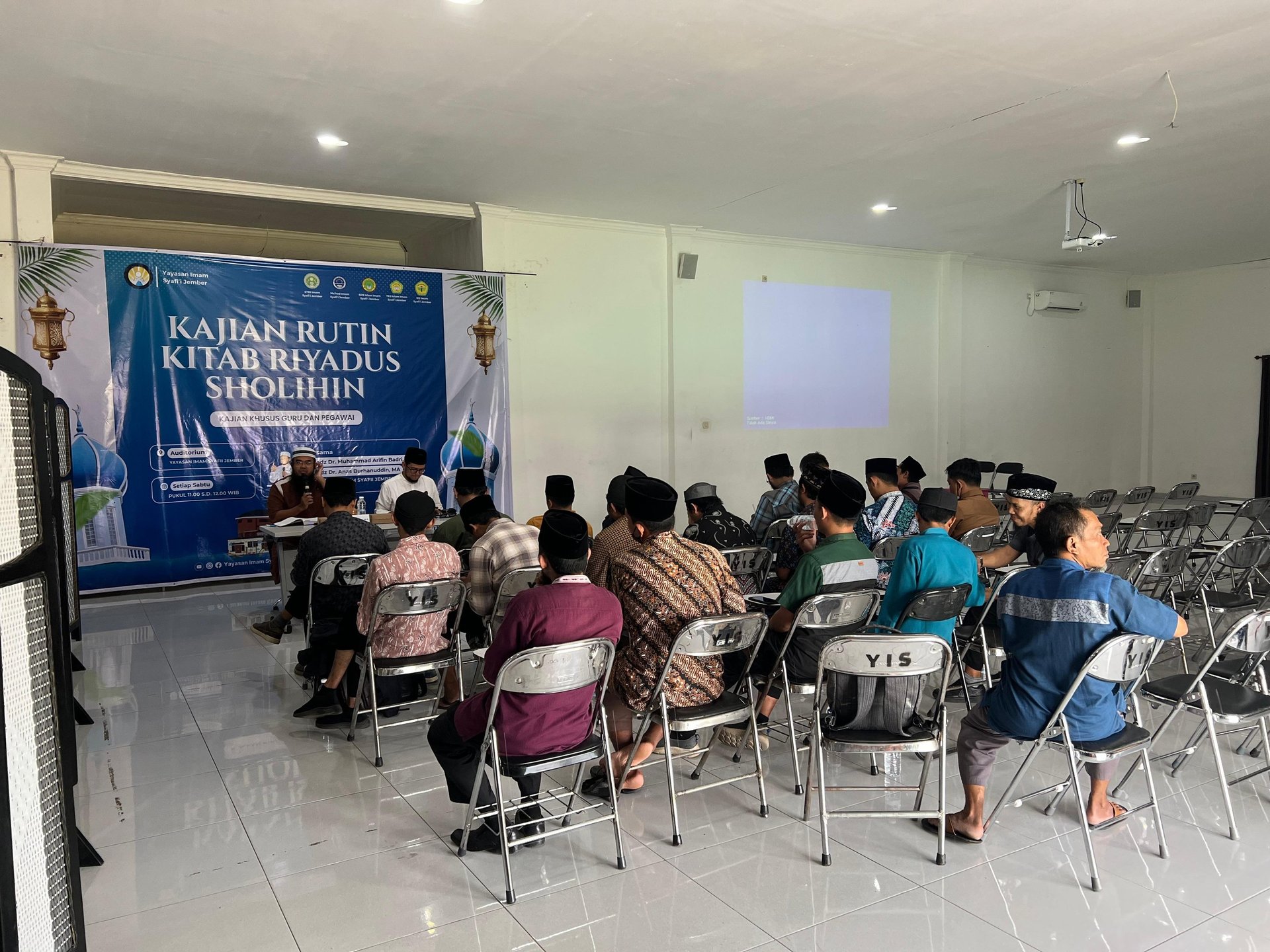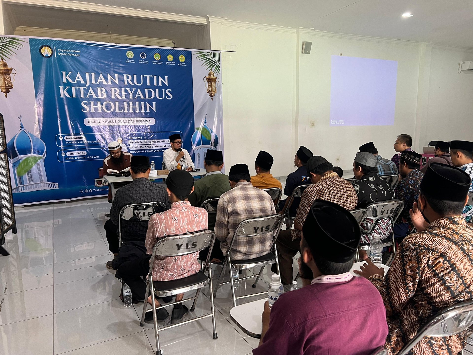 Jember, 11 Oktober 2025 — Yayasan Imam Syafi’i Jember kembali menggelar kajian rutin dengan pembahasan kitab Riyadhus Shalihin karya Imam An-Nawawi. Acara yang berlangsung di Auditorium Yayasan Imam Syafi’i ini diikuti oleh 85 guru dan pegawai, dengan pemateri Ustadz Dr. Anas Burhanuddin, M.A.