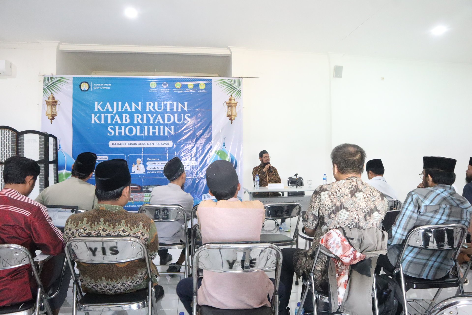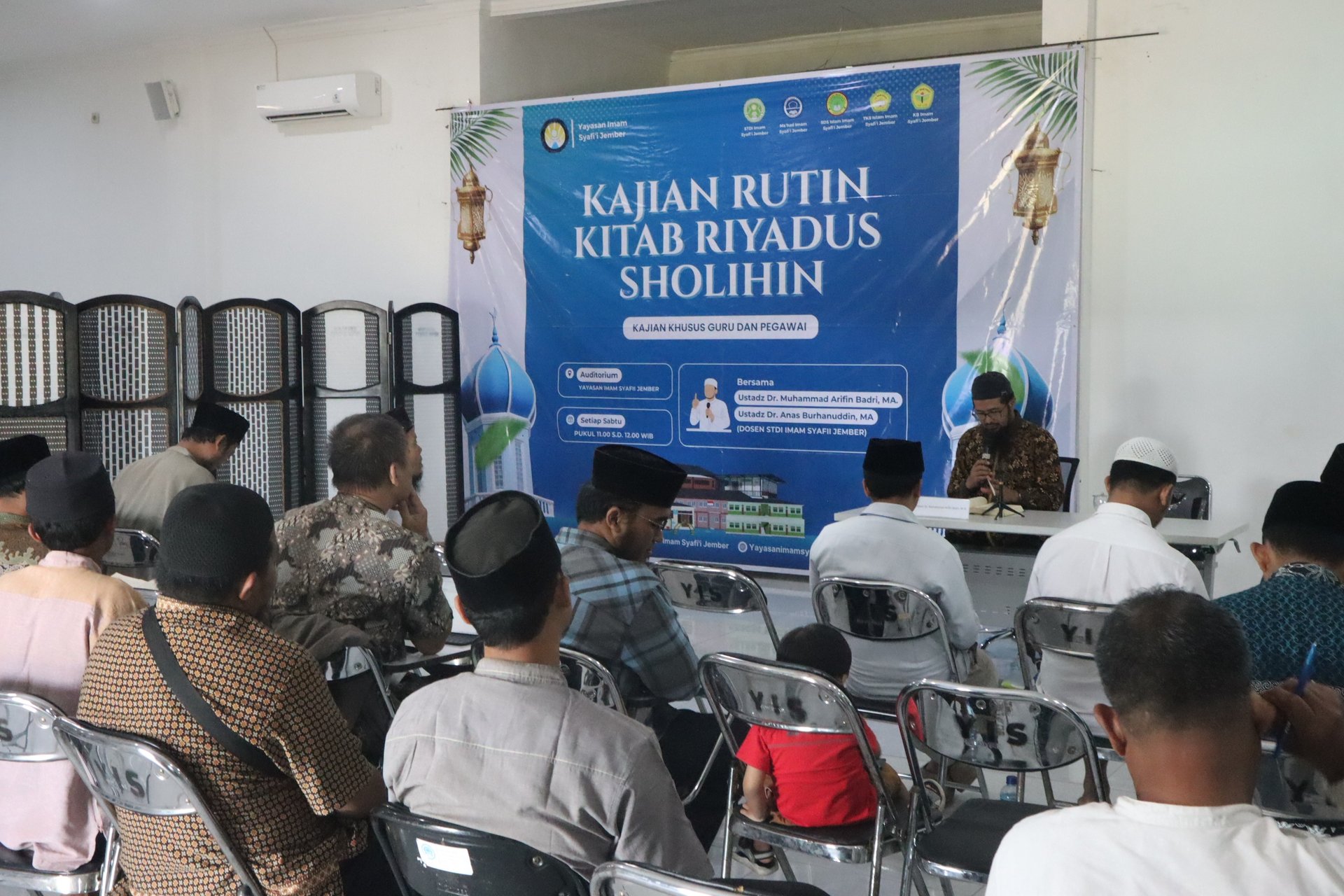 Jember — Yayasan Imam Syafi’i Jember kembali menyelenggarakan kajian rutin kitab Riyadhus Shalihin karya Imam An-Nawawi Sabtu, 31 Januari 2026 di Auditorium Yayasan Imam Syafi’i. Kajian kali ini membahas Bab 4: Jujur, disampaikan oleh Ustadz Dr. Muhammad Arifin Badri, M.A., Ketua STDI.