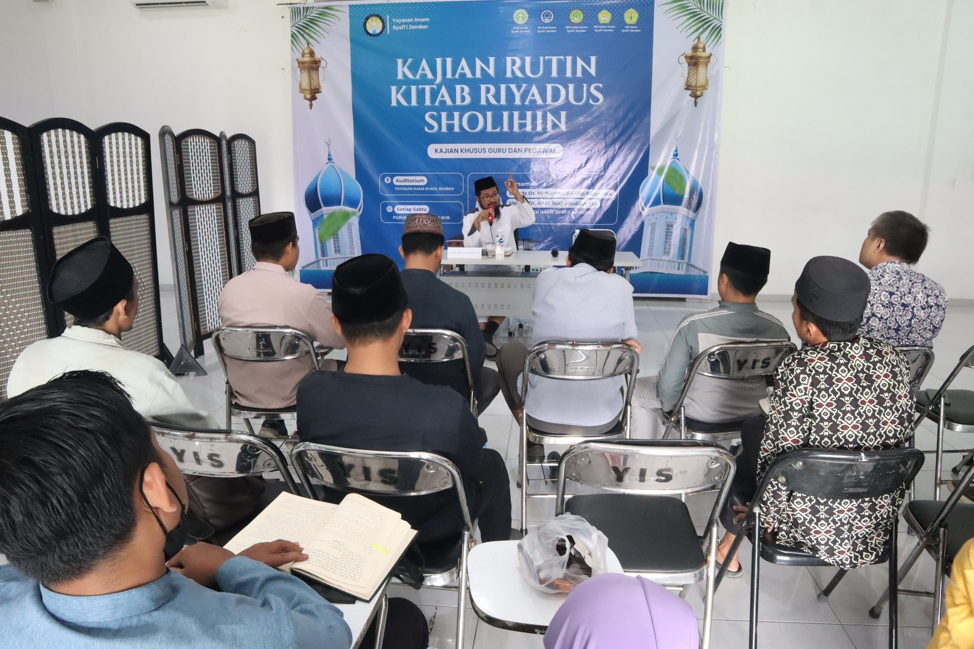 Jember — Yayasan Imam Syafi’i Jember kembali menyelenggarakan kajian rutin bagi pegawai dan guru pada Sabtu, 25 Oktober 2025. Kajian kali ini disampaikan oleh Ustadz Dr. Muhammad Arifin Badri, M.A. di Auditorium Yayasan Imam Syafi’i Jember, dengan pembahasan Kitab Riyadhus Shalihin Bab 2: Taubat.